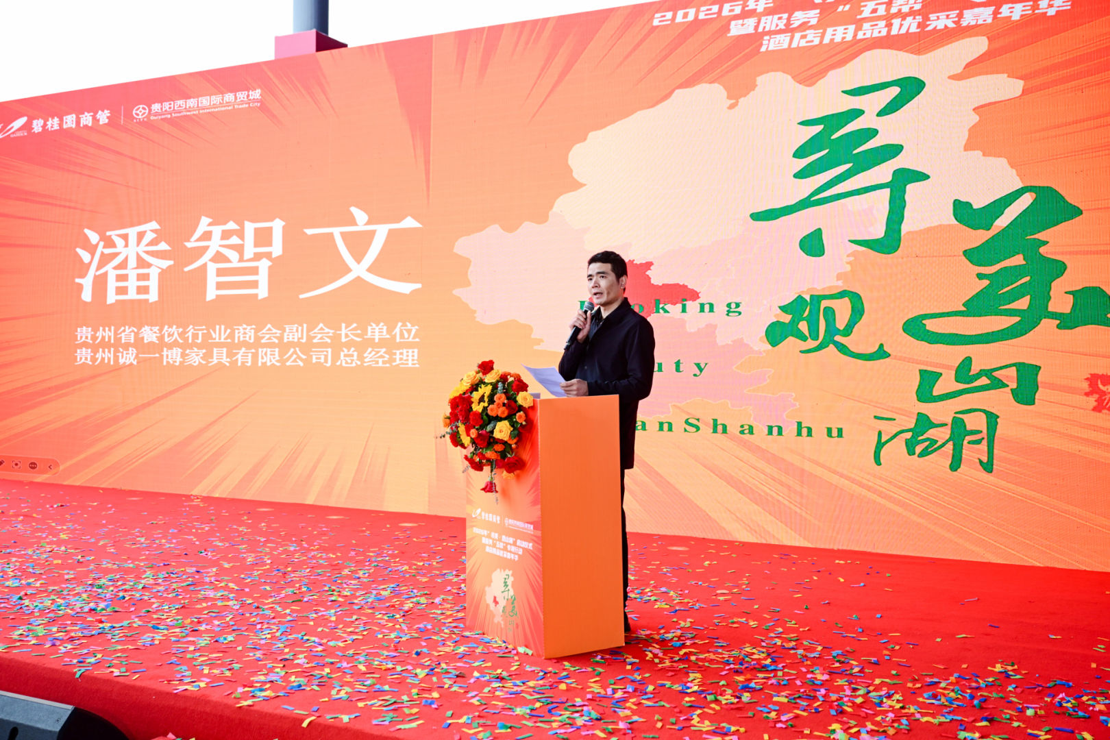 4月28日,由中共贵阳市委统战部、中共观山湖区委统战部、观山湖区工商联、观山湖区商贸物流集聚服务中心联合指导的2026年“寻美·观山湖”主题活动启动仪式暨服务“五帮”专项行动酒店用品优采嘉年华活动在贵阳西南国际商贸城4号馆南门广场举行。活动深度融合文旅品牌推广与产业服务,旨在搭建政企对接、供需合作的桥梁,以“五帮”举措赋能企业发展,推动观山湖区商贸物流产业提质升级。