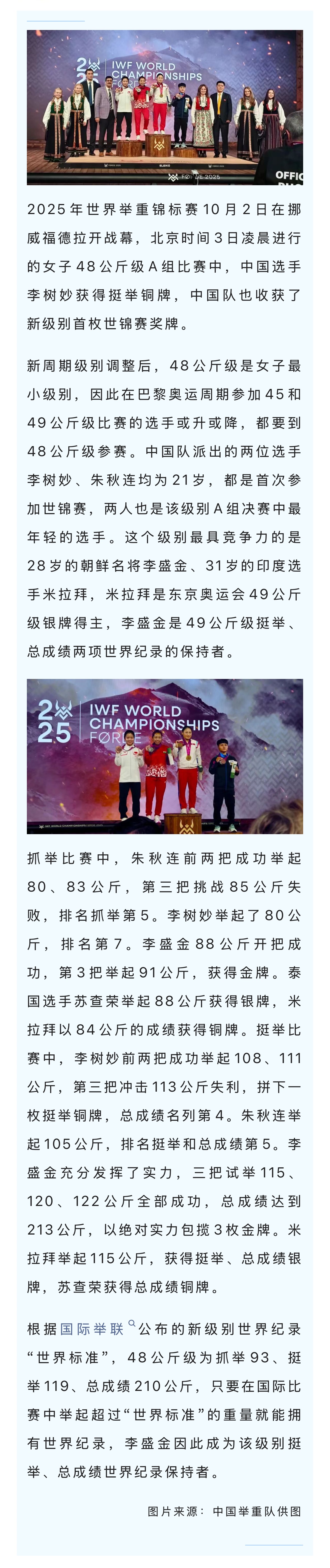 举重世锦赛李树妙摘铜