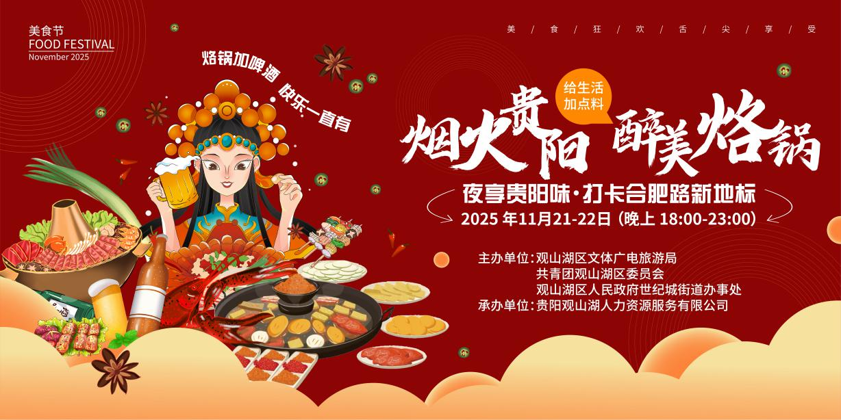 寒冬将至,暖食暖心。11月21日至22日,“烟火贵阳· 醉美烙锅”美食节活动将在贵阳市观山湖区合肥路热闹开启。本次活动以贵州特色烙锅为核心载体,旨在丰富市民夜间文化生活,激活区域消费活力,为观山湖区“15分钟夜间消费圈”建设注入新动能。