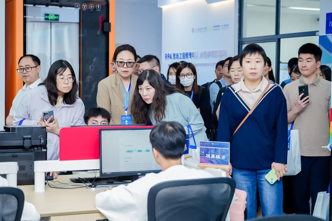本次会议特走进国家级现场工程师专项人才培养项目基地,与会人员参观了RPA智学实践教室、学生智造工坊、导师创新工作坊、RPA测试开发室、工程师创意孵化站、工程师灵感驿站,沉浸式体验了微型RPA生态圈。