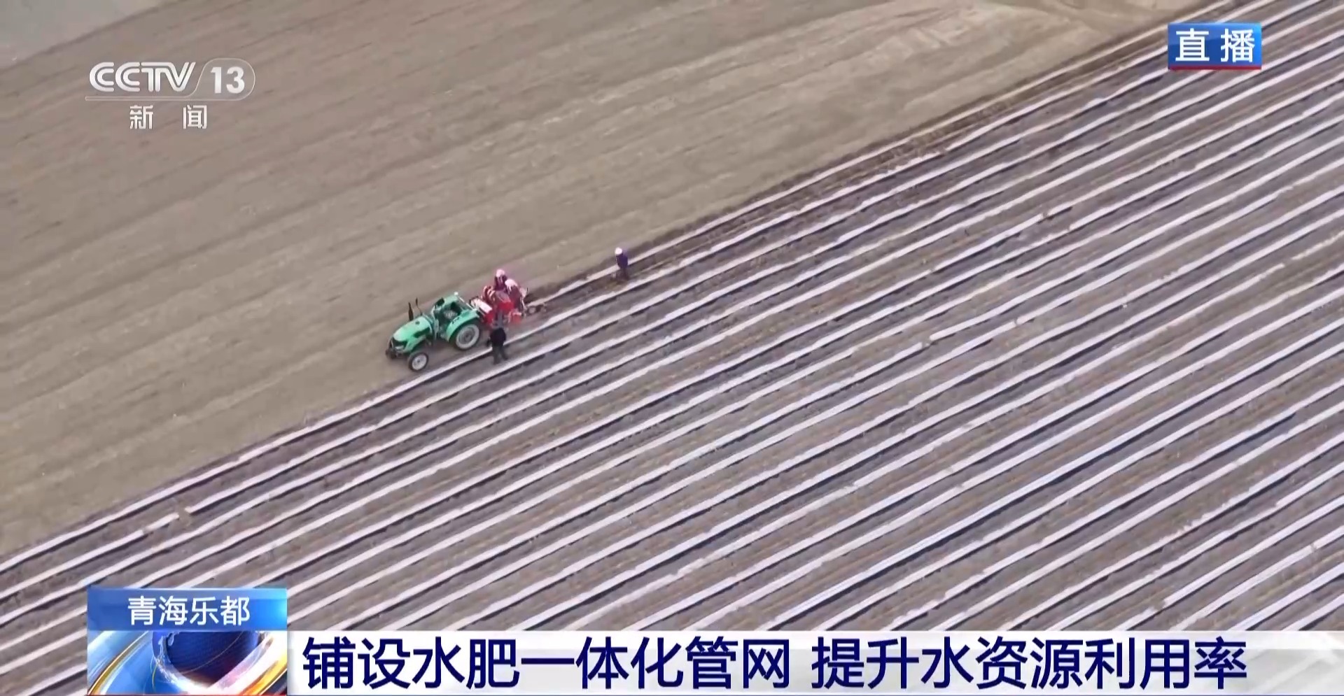记者来到了青海省海东市乐都区的一处“粮食作物水肥一体化技术示范区”。这片总面积约700亩的田地上,已经开启了马铃薯的春耕播种工作。自去年以来,这里农业用水的方式却发生了巨大的转变。通过铺设水肥一体化管网,农业用水实现从大水漫灌转为精准滴灌,节水量超65%,有效提升了水资源的利用率。