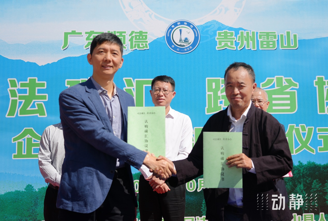 2022年,雷山县人民法院发动该县西江镇黄里村15户林农将176.7亩森林,以一亩森林碳汇折算50元为一股入股当地茶企,一年后林农获得了首笔分红1.2万元。借助粤黔结对帮扶的契机, 2023年黄里村60户林农代表与广东省一家企业代表签定协议,企业对村里森林碳汇1000亩,按每亩每年碳汇量作价60元认购,达成了全国首例“司法碳汇跨省协作企业认购”协议。“资源”变“资金”,森林碳汇变成了真金白银,林农管护树林更加用心用力。