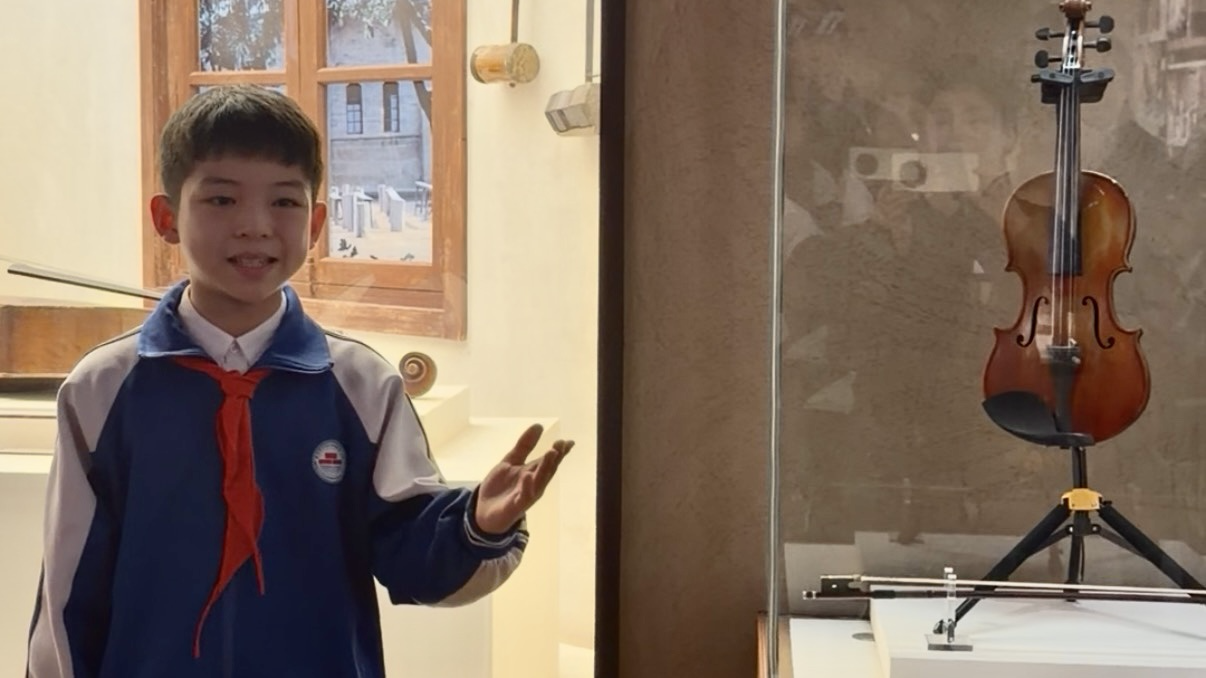 小小讲解员正在讲解张贞黼自制小提琴的故事