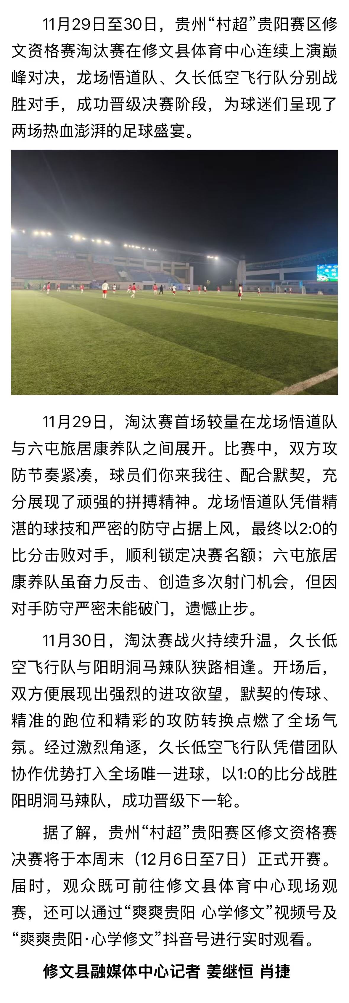 贵州“村超”贵阳赛区修文资格赛淘汰赛圆满收官 两支球队成功晋级