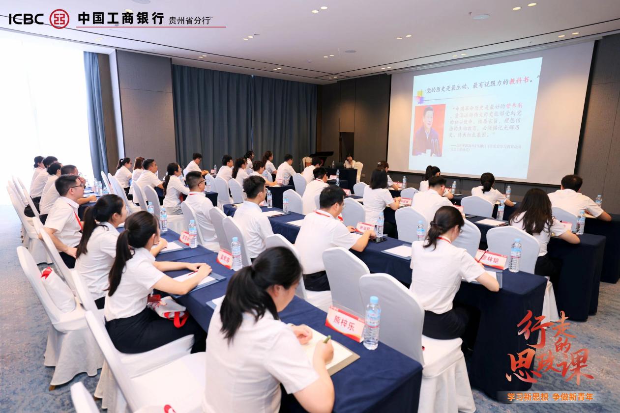 以学习为导向、以业务为依托。组织学员用心研讨,开展以“学习新思想,争做新青年”为主题的分享交流会,一方面是各二级分行的青年员工代表,围绕学习贯彻党的二十届三中全会精神,推动落实总行“五化”转型部署,以高效能改革服务高质量发展进行了专题研讨;另一方面是来自工行六盘水分行、兴义分行办公室负责人围绕做好新时代思政工作分别进行了经验交流,分别介绍了各自将思政工作融入日常工作、融入中心工作、融入宣传思想文化工作的典型案例和经验做法,促进全体参训学员进一步掌握思政工作的内涵和方法。
