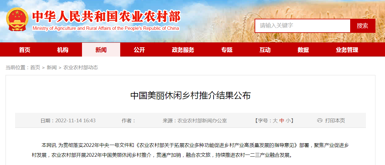 据农业农村部网站14日消息,为拓展农业多种功能,促进乡村产业高质量发展,农业农村部开展了2022年中国美丽休闲乡村推介,贯通产加销,融合农文旅,持续推进农村一、二、三产业融合发展。