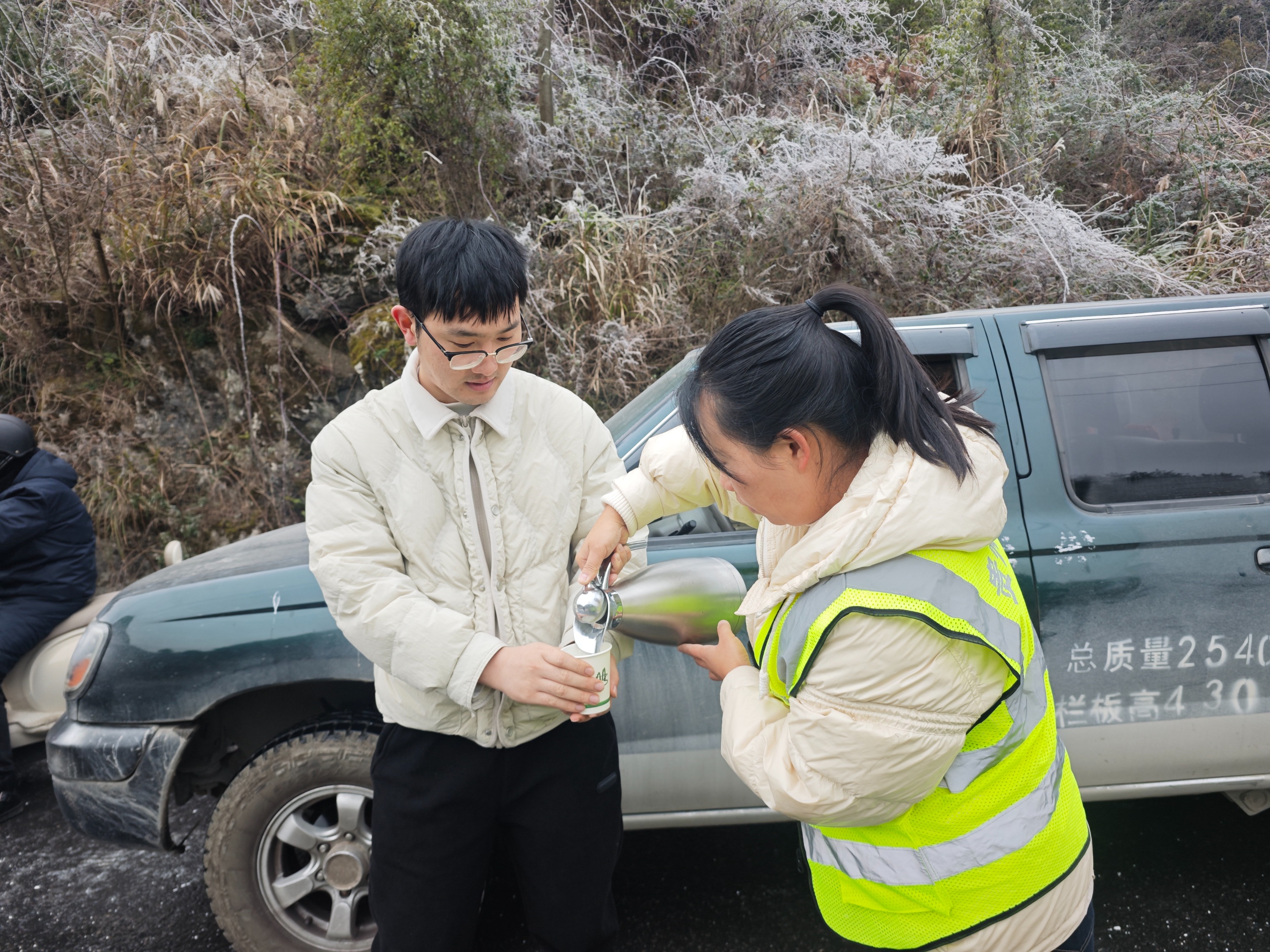 与此同时,S206线上的温情正在传递,一双冻得通红的手,稳稳托起一杯热水,递给焦急等待的司乘人员,“来,暖暖手!”——一杯热水,一个面包,公路青年用贴心举措驱散冬日寒意,汇聚成一股坚实的力量,成功救助滞留车辆14辆,为28名受困人员带来了暖意与安心。
