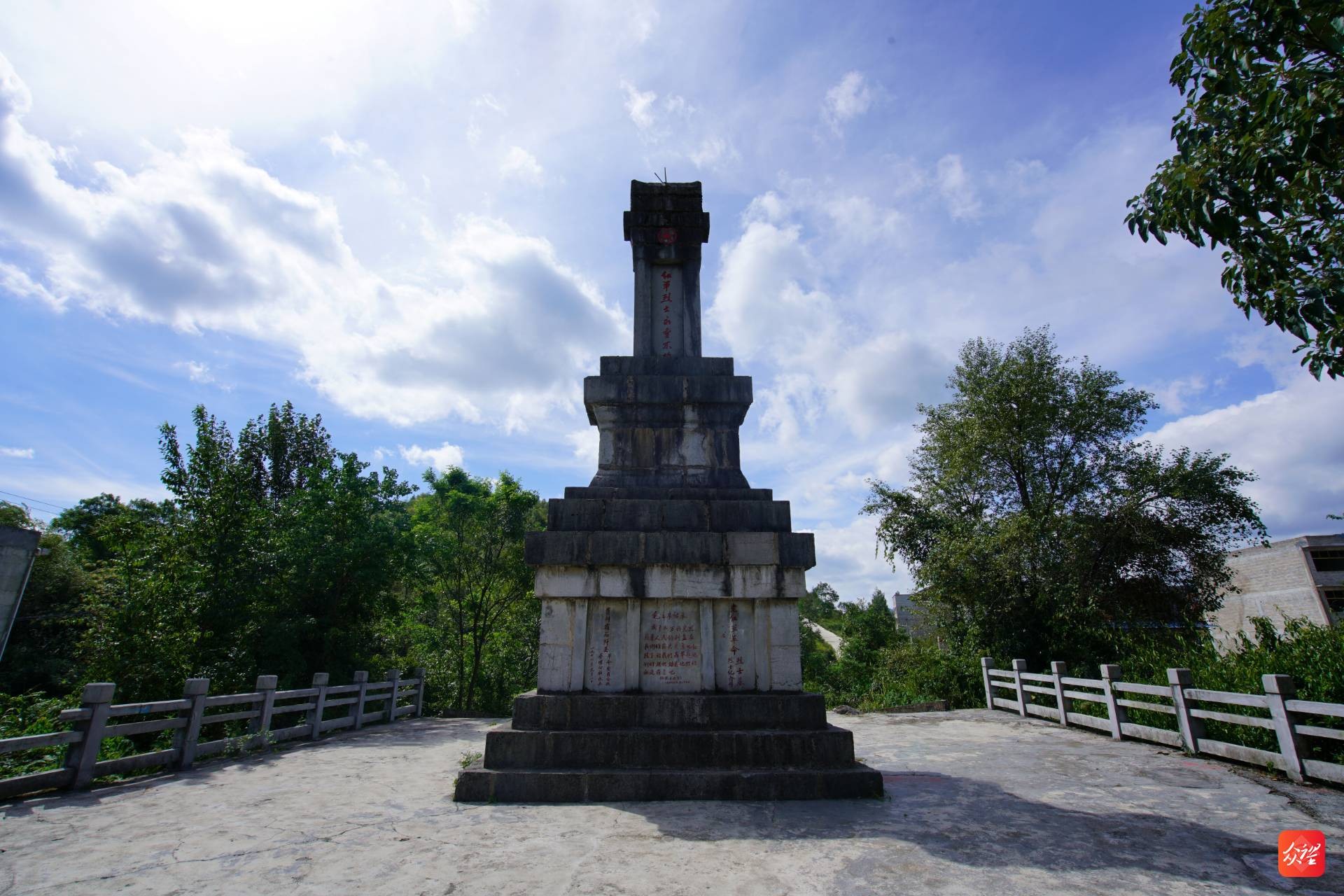 这座纪念碑系1976年晏明公社组织当地群众投工投劳修建,其中安葬的红军烈士遗骨,是晏明公社从红军跳崖处山涧及晏家湾周边溶洞里搜寻而来。