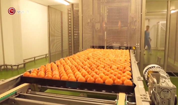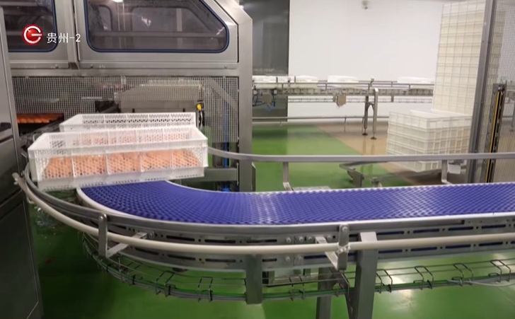 镜头转到江口县,在贵州康盛达公司的分拣车间,一枚枚新鲜的鸡蛋在传送带上快速流动,经过自动分拣,准备发往市场。这家自动化程度很高的养殖基地,直接带动了100多人在家门口就业,还间接为2000多名村民带来了收益。
