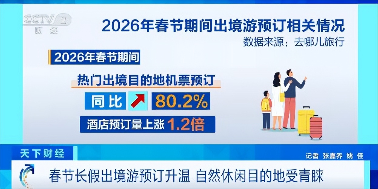 2026年春节期间,热门出境目的地机票预订同比增长80.2%,酒店预订量上涨1.2倍。泰国、马来西亚、越南、新加坡、澳大利亚、西班牙等地最受欢迎。此外,长线目的地和个性化小团游需求明显提升。