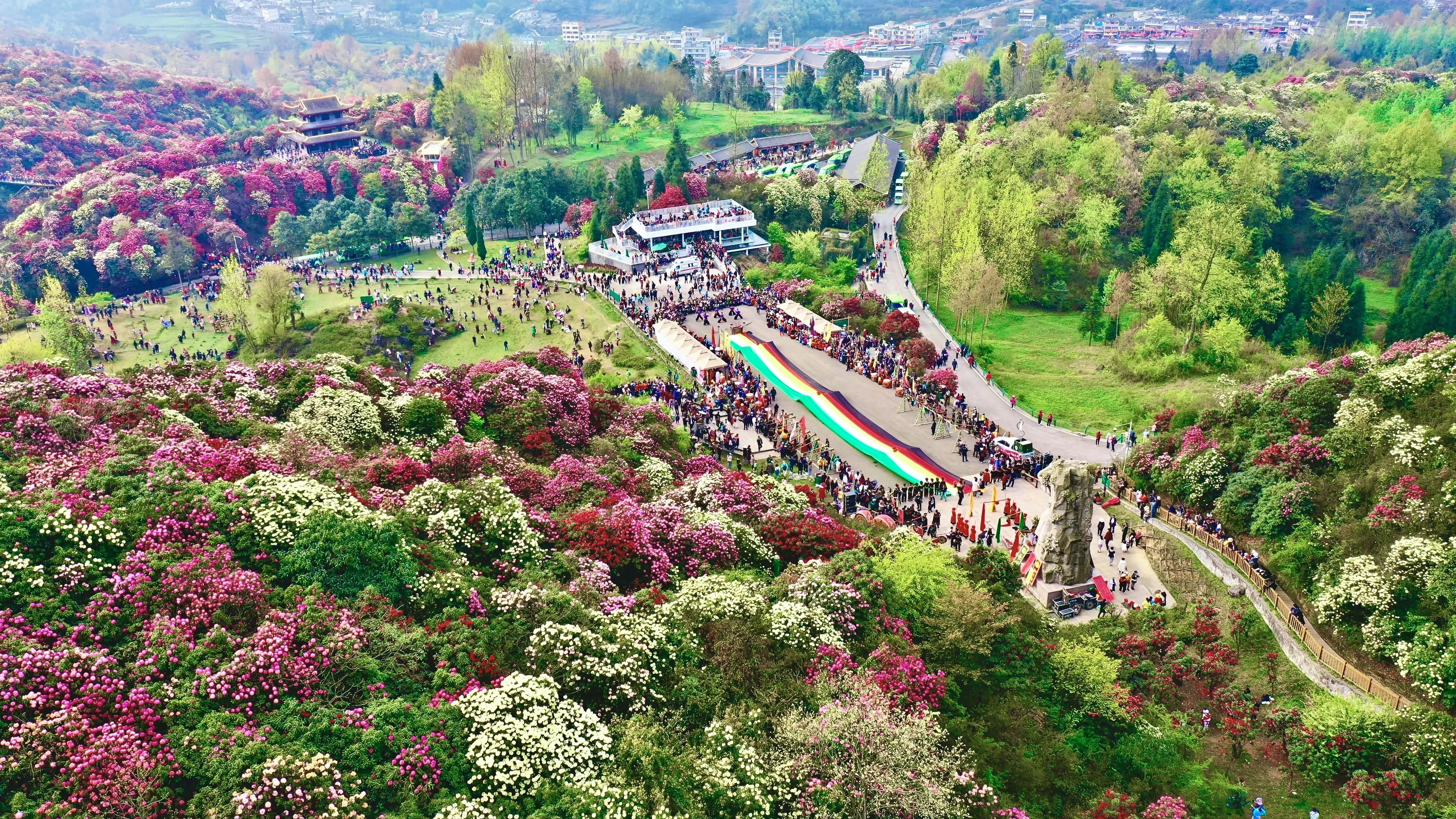 今年花季亮点纷呈,全新升级新场景、新玩法、新体验。国风旅拍+花仙市集+互动演绎,随手拍出圈大片。“仙幻之境”“守山之旅”双主题新场景,沉浸式逛花海。杜鹃银票互动玩法,打卡兑换美食文创。祭花神、音乐节、越野挑战赛、极限自行车赛轮番上演,把自然花海与文化体验深度融合。
