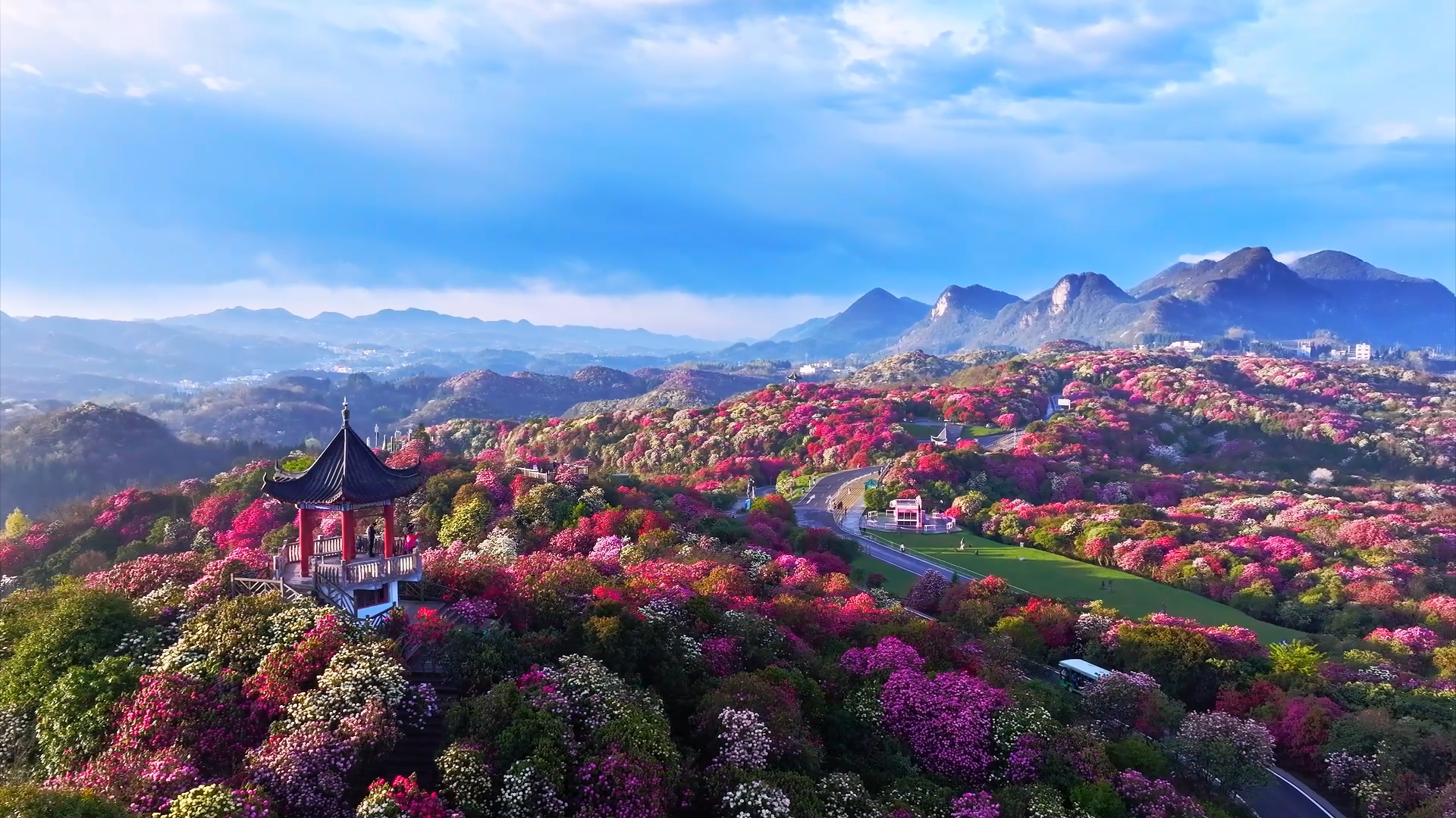 作为国家5A级景区、世界杜鹃花森林公园,百里杜鹃坐拥125.8平方公里原生杜鹃林带,40余种杜鹃次第绽放,被誉为“地球彩带、世界花园、杜鹃王国”。