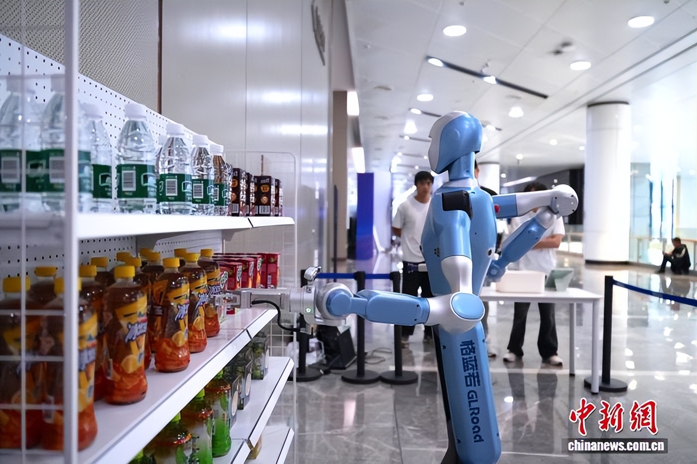 记者近日在武汉一场大型会务活动现场看到,一台身高约1.7米的机器人礼貌地和来宾挥手致意,还能语音播报会务信息。不远处,另一台机器人当起“小卖部主理人”,顾客点击电子屏幕下单后,机器人走到货架旁精准拿取商品,送到顾客手中。