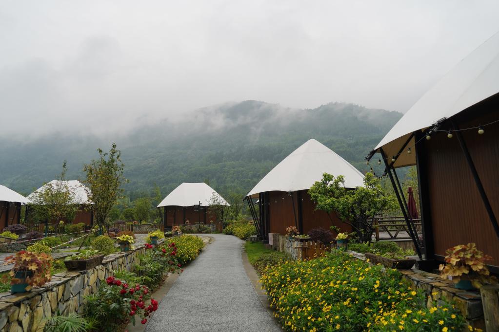 清平镇地处九顶山南麓山脚,九顶山也是长江支流沱江的源头所在地。2017年,借力大熊猫国家公园建设,清平镇开始封停矿井进行生态修复,转型发展旅游,告别“矿业经济”。矿山关停后,刘光兰所在的盐井村村集体成立了金色清平旅游开发公司,分批建设旅游设施,打造旅游项目,她加入旅游公司,从一名导游逐渐做到露营、餐饮等项目的业务负责人。