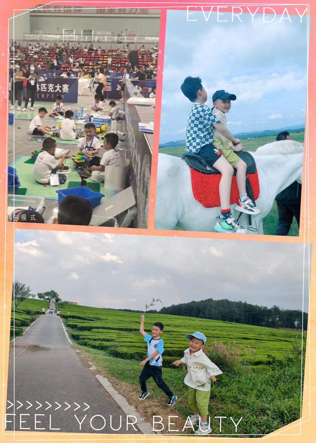我是一个热爱运动的阳光男孩,喜欢跑步、踢球、玩乐高,也特别喜欢主持。妈妈一有空就会带我去旅行,看不同的风景,尝试各种有趣又刺激的体验。我性格开朗,热爱集体,也愿意和大家交流分享。因为有两个深深的小酒窝,所以我特别爱笑,笑起来眼睛也会弯成月牙——妈妈说,这样看起来让人感觉很温暖。