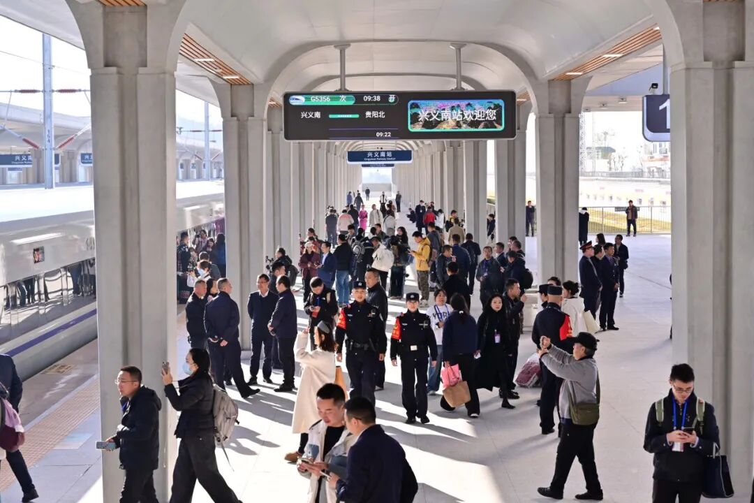 今天是盘兴高铁正式开通运营的第七天,从11月28日至12月3日,兴义南站发送旅客达19567人次、保田站发送旅客1194人次,前往万峰林、马岭河峡谷、万峰湖等景区的游客数量同比显著提升。