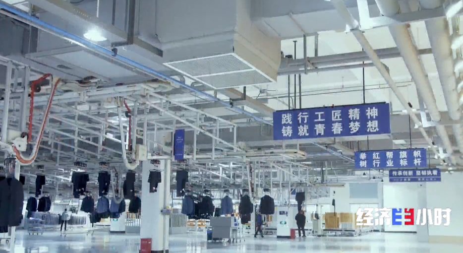 传统手工两周才能完成的西服,现在最快3天即可出厂,生产效率提升了25%-30%,电商日均发件量约7000单,线下门店日均发件量约2万件。11万平方米的智能仓库,实现全流程的自动化数据采集、实时追踪与智能管控的智能出库。