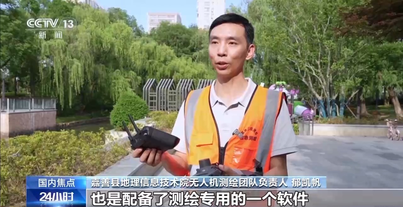嘉善县地理信息技术院无人机测绘团队负责人 郁凯帆:我们这个无人机配备了北斗的导航定位模块,可以实现厘米级的定位精度。同时,我们的遥控器也配备了测绘专用的一个软件,可以自动设定航线,保证最终的成果精准。