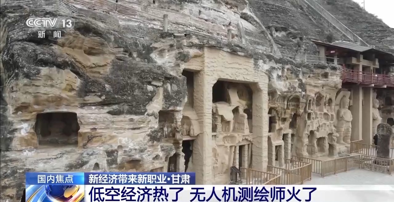 无人机测绘在古建筑保护上也有着独特的优势。今年三月,一架搭载高精度传感器的测绘无人机,仅用2小时就完成了庆阳市北石窟寺崖体地形测量工作,而在以往,这项工作大约需要6个人耗时5天。另外,传统的人工测绘存在40%以上盲区,仅能获取二维数据,难以及时发现山体内部空洞等隐蔽风险源。此次北石窟寺地形通过无人机进行测绘,全面掌握了北石窟及其周边环境现状,通过3D建模,展示北石窟寺崖体地形构造,精度可达毫米级,为文物保护项目提供精准的数据支持。