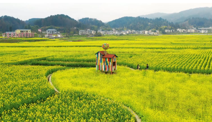近日,位于贵州省遵义市红花岗区海龙镇的千亩油菜花竞相绽放,金黄的花海与青山交相辉映,吸引不少游客前来踏青赏花,尽享春日田园风光。