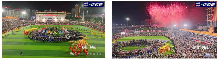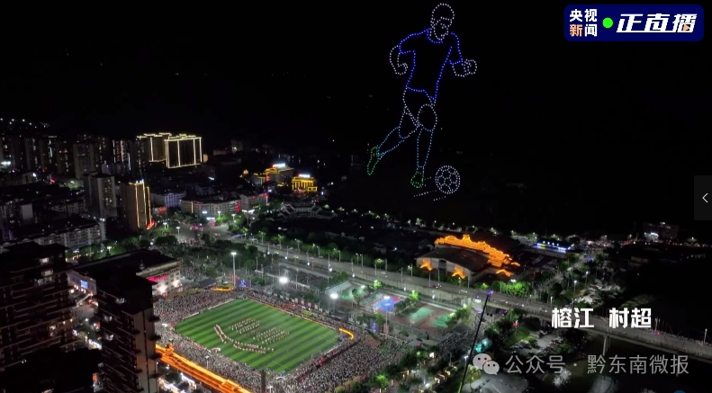 “这里是苗乡侗水,甜甜榕江快乐村超,活力四射”