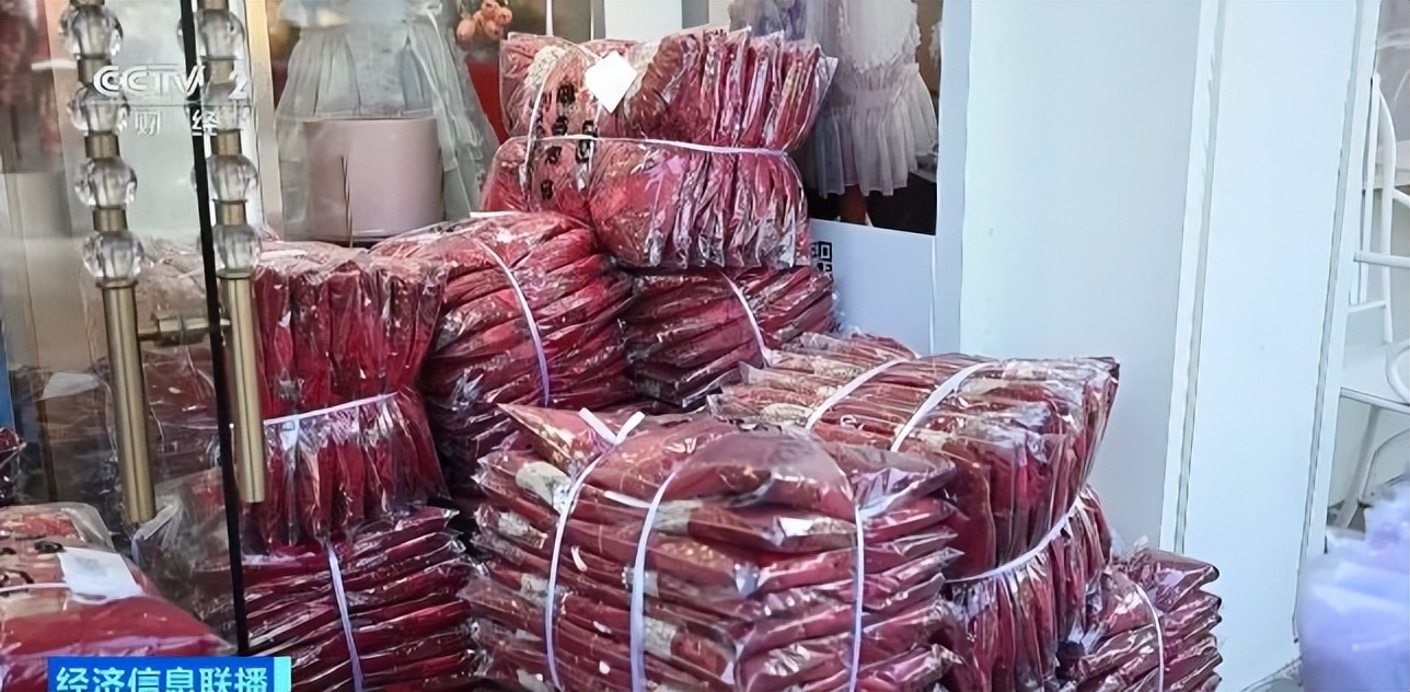 浙江湖州市织里镇某服装公司业务经理 盛芳:妈妈在家里也能穿,孩子也能穿,比较适合一家人整整齐齐的,加上是大红色,过年比较有气氛又喜庆。