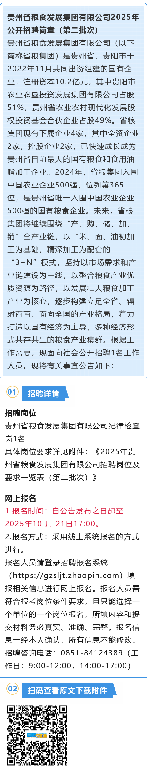 【国企】贵州省粮食发展集团有限公司招聘!报名截止时间:10月21日!