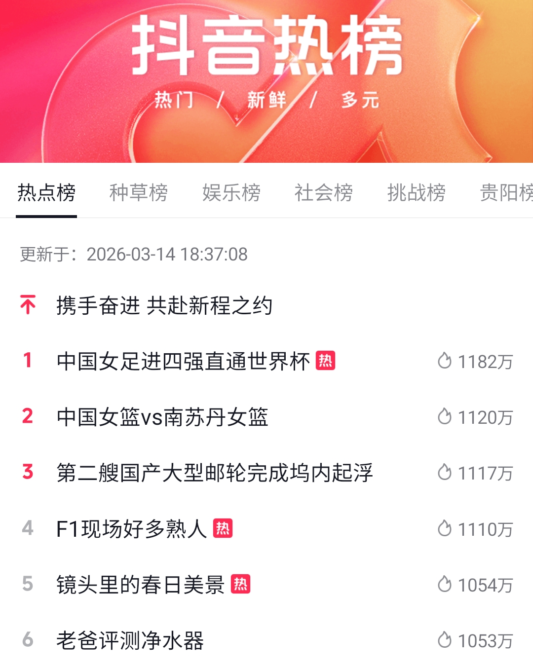 动静听新闻丨2026年春运全社会跨区域人员流动量94.1亿人次 创历史新纪录丨2026年农资保供重点企业名单发布丨中国女足晋级亚洲杯四强 直通世界杯丨联合国秘书长候选人增至五人