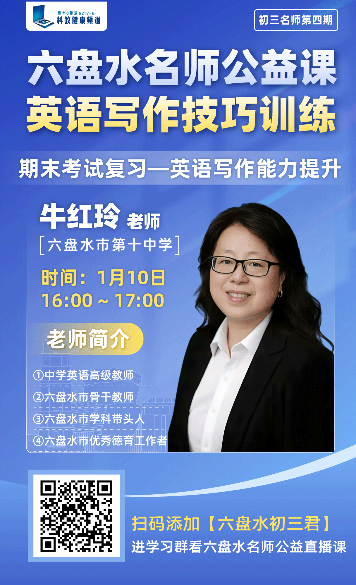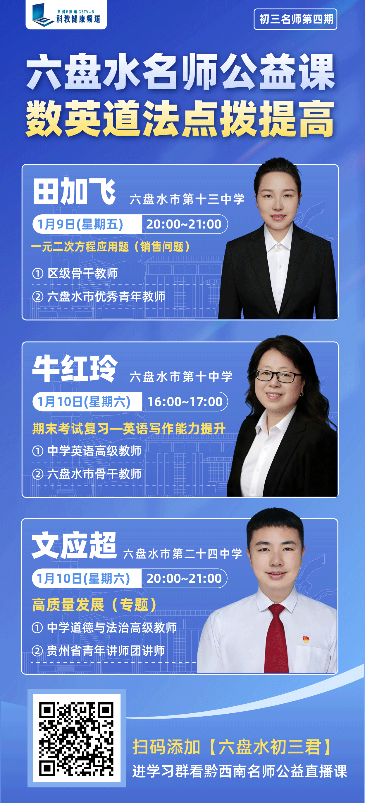 为深入贯彻落实教育惠民政策,切实解决初三学子备考中的实际困惑,由贵州广播电视台教育事业部与钟山区教育局联合主办、钟山区各初级中学深度参与的《钟山区名师公益直播课堂》将于本周五开启第四期!这是一堂专为初三学子打造的全免费、高含金量升学助力的直播课堂,旨在通过权威指导与实用方法,为孩子们的中考冲刺注入强劲动力。