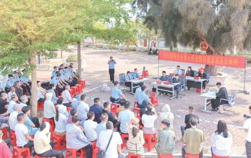 近日,海南省“爱鸟周”暨“世界野生动物日”主题宣传活动在东方市启动,白沙法院紧扣“保护野生鸟类、守护生物多样性”核心主题,把巡回法庭搬进东方市八所镇墩头村委会,公开开庭审理并当庭宣判一起危害珍贵、濒危野生动物罪案件,将庭审现场转化为沉浸式生态法治课堂,为海南自贸港生态安全和生物多样性保护筑牢坚实司法屏障。施建兵 农民日报全媒体记者 邓卫哲 摄