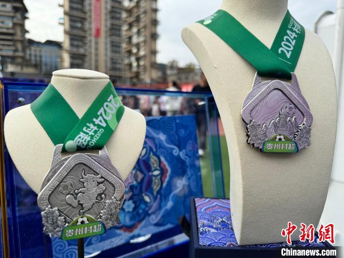 图为设计师以榕江人文风情为元素设计的“村超”奖牌。中新网记者 袁超 摄