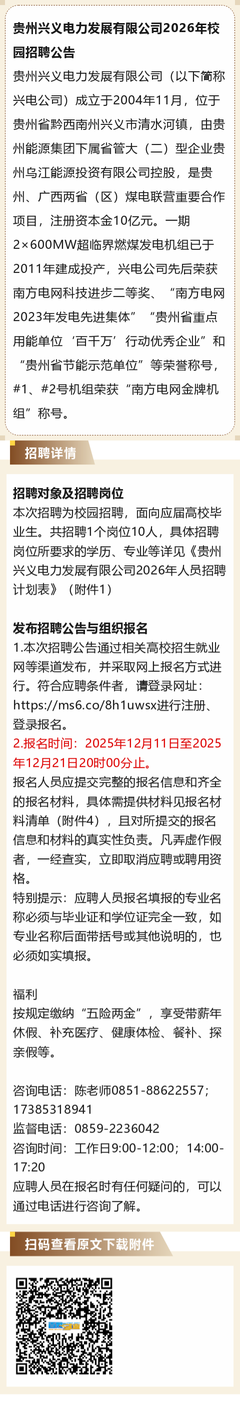 【国企】贵州乌江能源投资有限公司控股公司招聘!五险两金!