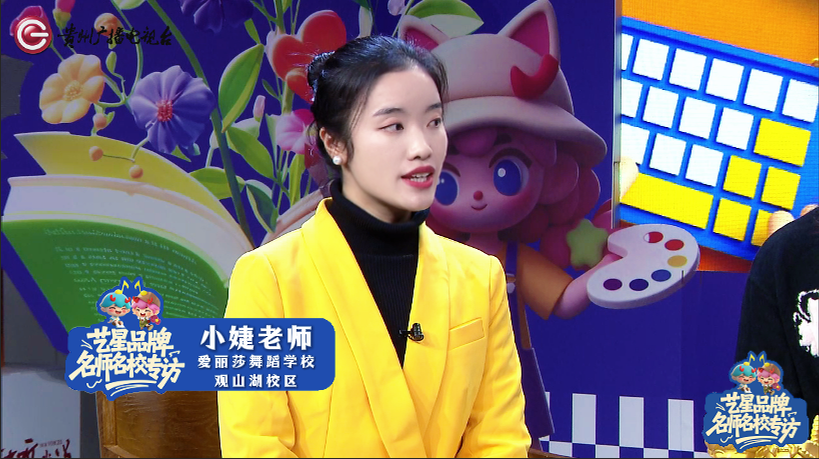 近日,爱丽莎舞蹈学校白云校区的刘老师和观山湖校区的小婕老师受邀参加贵州广播电视台《艺星少年》名师名校专访,围绕舞蹈教育中课堂训练与舞台实践的融合价值展开分享。