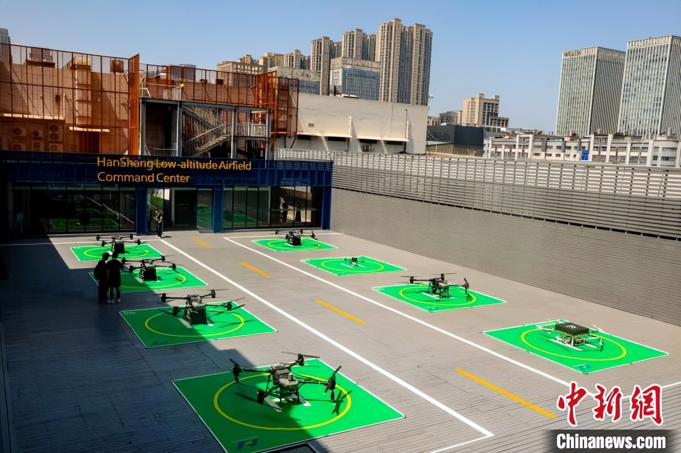 两架满载货物的无人机6月16日精准降落在武汉汉商21世纪购物中心楼顶停机位,这标志着飞行服务航线覆盖武汉三镇的汉商低空港投入运营。