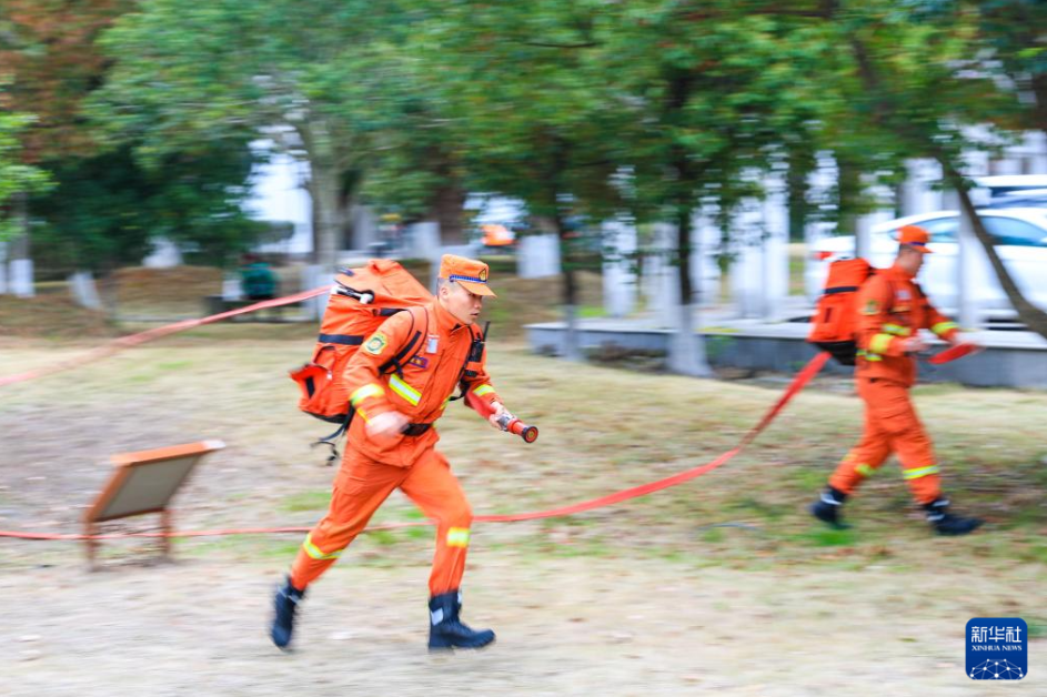 3月24日,在浙江省宁波市鄞州区东吴镇,当地综合森林火灾应急救援队队员进行森林防灭火应急处置演练。