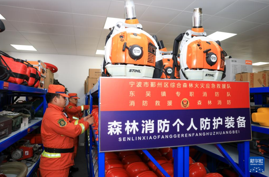 当前正值春耕备耕关键时期,森林火险等级高,浙江当地森林防灭火部门加强巡山护林工作,确保物资充足完好,并利用无人机等技术,提升森林防火灭火能力。新华社记者 江汉 摄