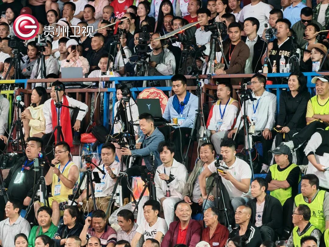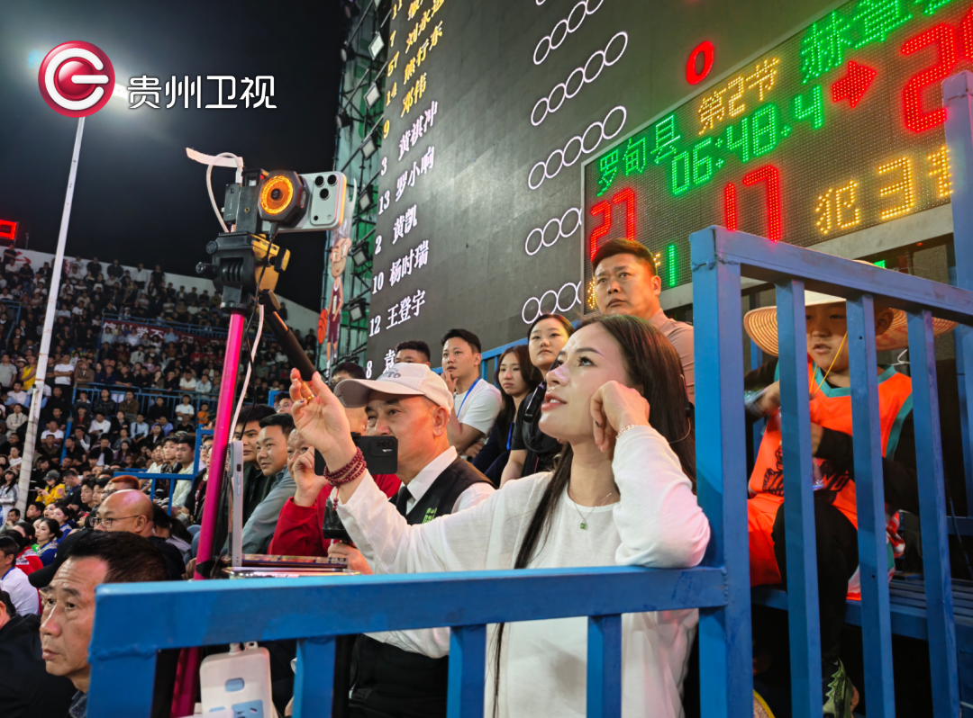 4月11日晚,贵州省第四届“美丽乡村”篮球联赛(贵州村BA)总决赛现场座无虚席,来自五湖四海的观众在台盘村热情欢呼着,当中不少人举起手机开启直播,向全世界实时分享着贵州乡村体育的热烈氛围,让位于“云端”的观众席也热闹非凡。