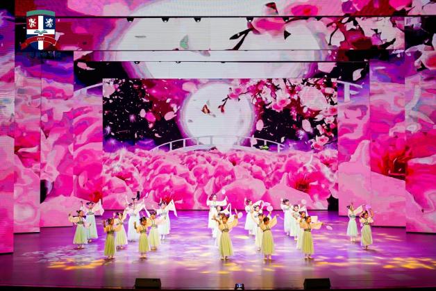 舞台之上,由学校师生代表出演的节目接连登场,舞动心弦社团的古典舞《桃花笑》韵致翩跹,花样跳绳队《“绳”采绽放”》活力四射,儿童舞《崖上的波妞》纯真可爱,合唱团与教师的歌声《等迷路的人听》温暖悠扬,抚慰心灵......