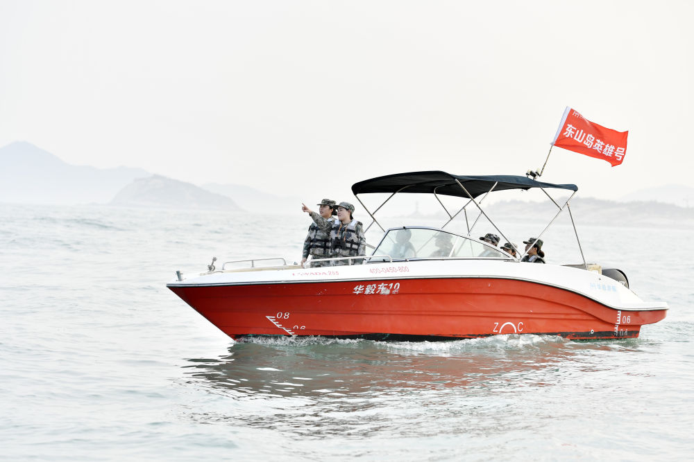 福建东山铜陵女子民兵哨所哨兵乘快艇巡查周边海域情况(2023年4月18日摄)。李涛 摄