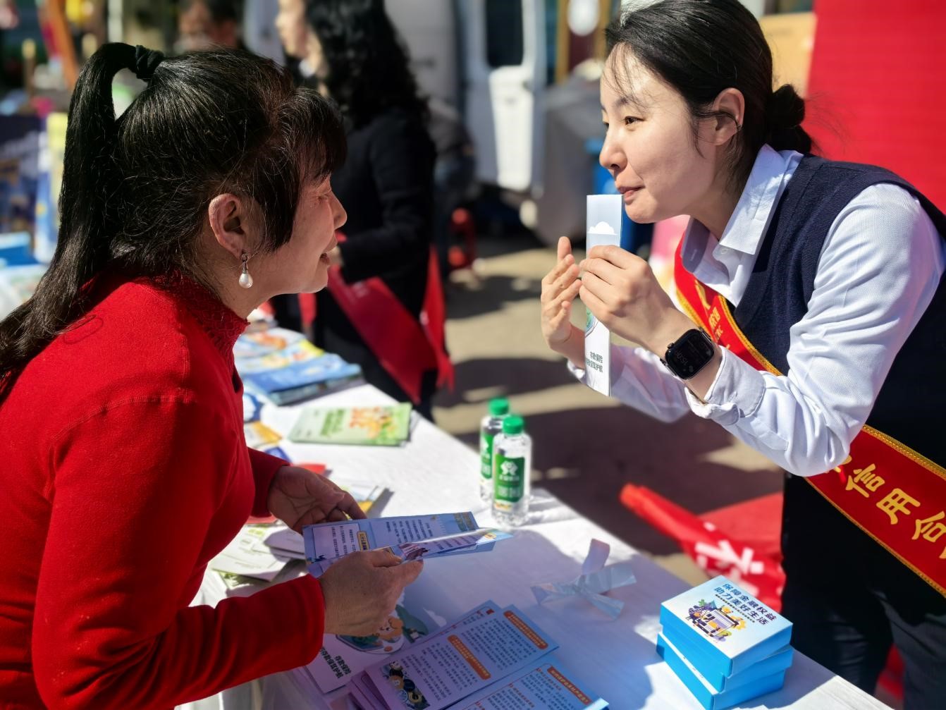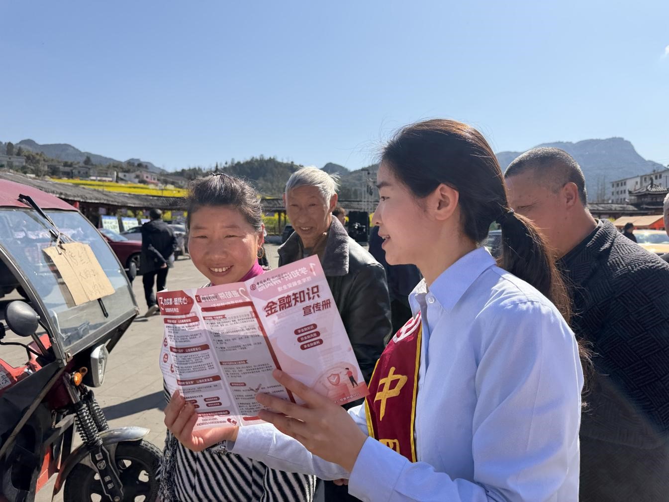 活动现场,金融知识宣传咨询台整齐有序摆放,“遵义红金宣”金融知识宣传队的工作人员热情接待每一位来往游客和当地村民,一边发放通俗易懂的宣传折页,一边用接地气的方言、生动鲜活的案例,面对面讲解金融常识、拆解消费陷阱。没有晦涩的专业术语,没有生硬的理论灌输,每一句讲解都贴合群众生活,每一个案例都直击群众关切,让大家听得懂、记得住、用得上。