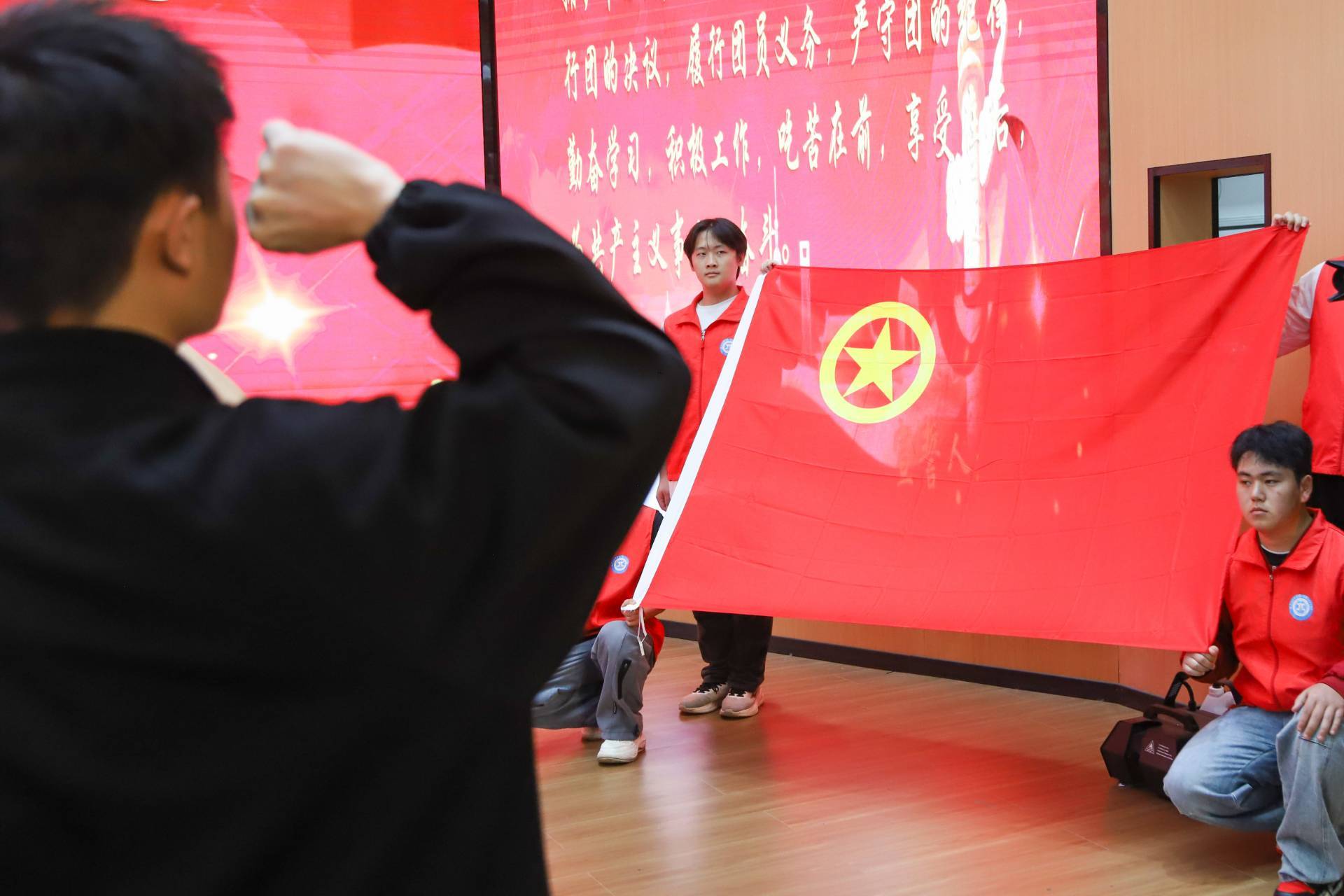 全体团员面向团旗庄严宣誓,铿锵誓言与广场正步声遥相呼应,标志着军人作风与团员使命深度融合,红色基因薪火相传。