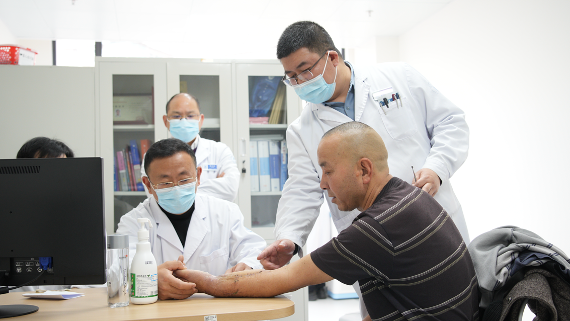 图为徐永清教授团队成员的范新宇(中)教授坐诊专家门诊