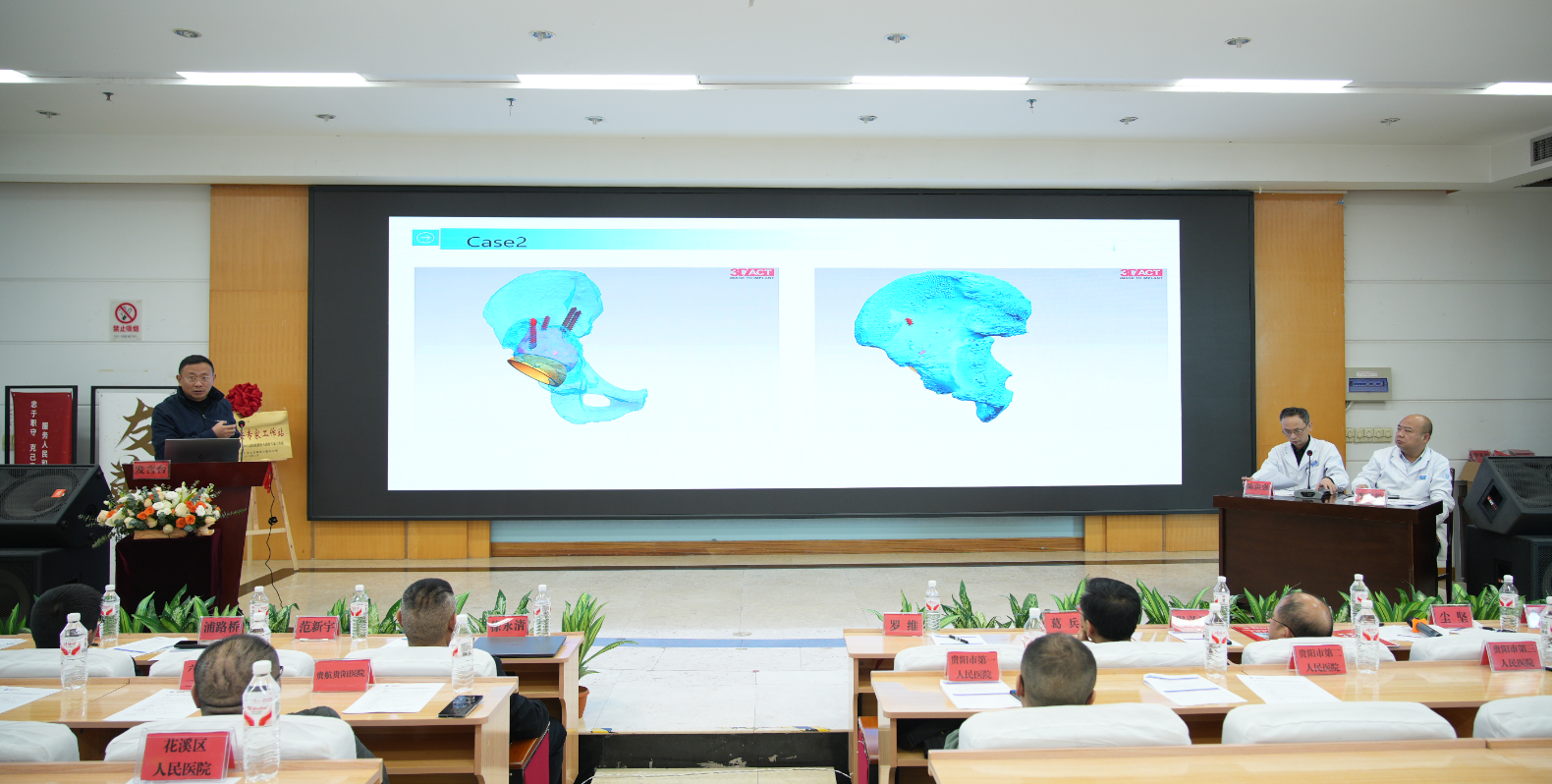 揭牌之后,紧接着是一场干货满满的学术交流会。徐永清教授分享了“保留后上支持动脉的股方肌骨瓣保髋治疗方法”,范新宇教授主讲了“定制型假体在复杂髋翻修中的应用”,浦路桥教授带来了“机器人辅助在全膝关节置换中的应用体会”,杨曦教授则深入讲解了“穿支螺旋桨皮瓣的理论与应用”。来自贵阳市第四人民医院的专家也拿出了自己的“看家本领”,关节外科主任陈洪强和手显微外科主任李青松先后分享了在“股骨头坏死的保髋之路”和“严重开放性骨折的一体化治疗”等方面的实战经验。台上讲得精彩,台下听得入神,现场气氛热烈,堪称一场“家门口的学术盛宴”。