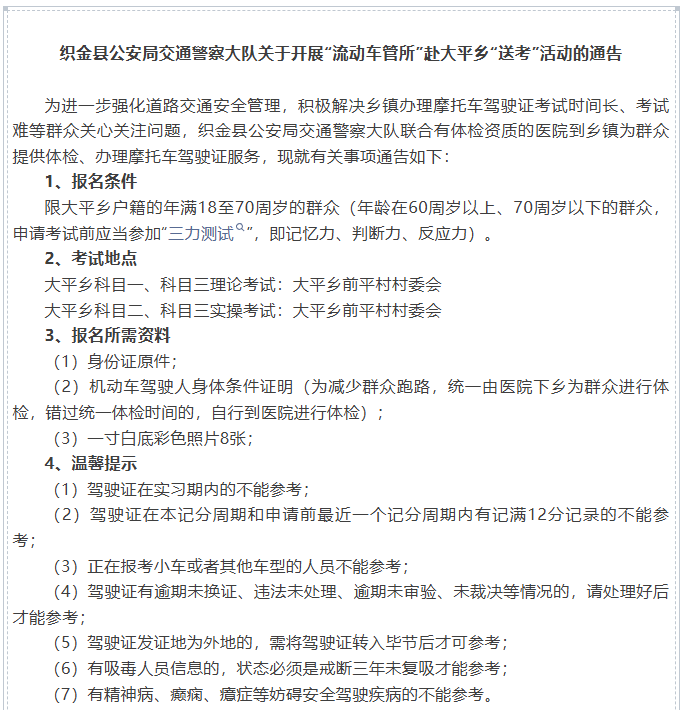 注意啦!“流动车管所”要送考、送牌到这些地方→