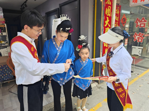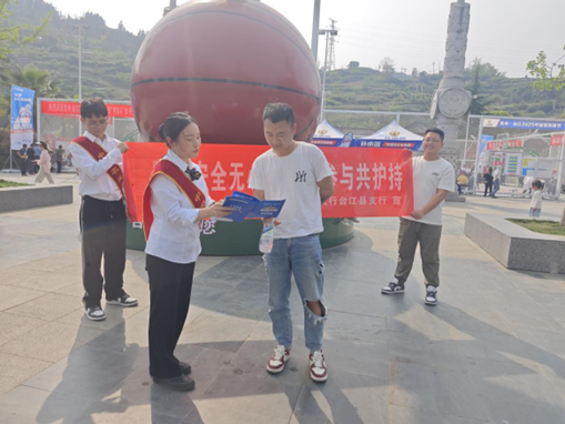 该行积极开展多维度宣传活动,立足于营业网点,亮明活动主旨,营造良好氛围,通过LED屏滚动播放国家安全教育标语,营业大厅摆放宣传折页,向过往的群众、游客以及前来办理业务的客户普及国家安全教育知识,增强维护国家安全意识。组建宣传小队,深入“姊妹节”活动场地,聚焦学生、老年、游客等重点群体,通过趣味问答、讲解、发放宣传手册、奖品等方式,将国家安全教育知识送到身边。
