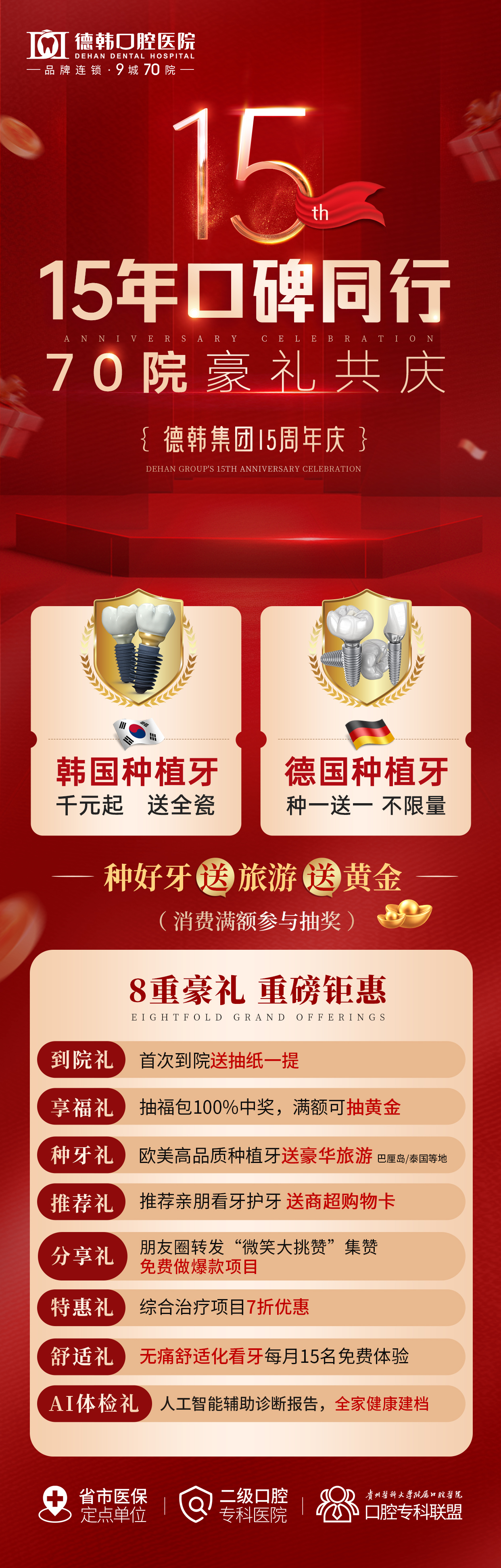 德韩集团成立15年来,每一步成长离不开市民们的信任,本次周年庆活动,不仅是对德韩集团发展里程碑的致敬,更是对 “守护国人口腔健康、成为国人口腔养护意识启蒙者” 初心使命的践行。通过本次舒适化诊疗免费体验活动,希望以专业、贴心的服务,帮助公众打破对牙科诊疗的恐惧壁垒,进一步助力提升全民口腔健康意识,让更多人重视口腔养护,拥抱健康笑容。