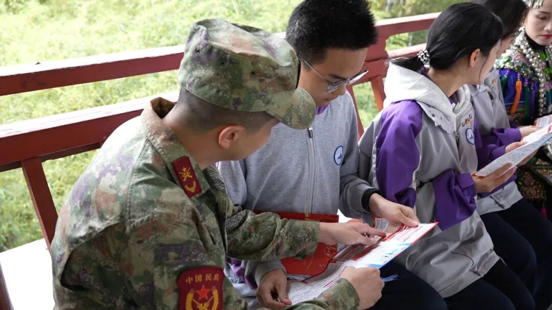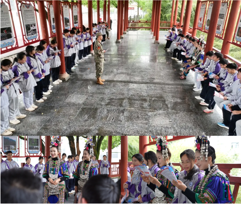 在黎平一中的风雨长廊内,身着民族盛装的非物质文化遗产代表性传承人与学生、民兵齐聚一堂,用"唱歌读书"的独特方式,开启一场非遗与国防交融的文化盛宴。活动中,黎平县人武部指导当地非物质文化遗产代表性传承人,将国防法规、英雄事迹、强军理念改编成侗族大歌新歌词,让千年非遗成为国防教育的"活教材"。