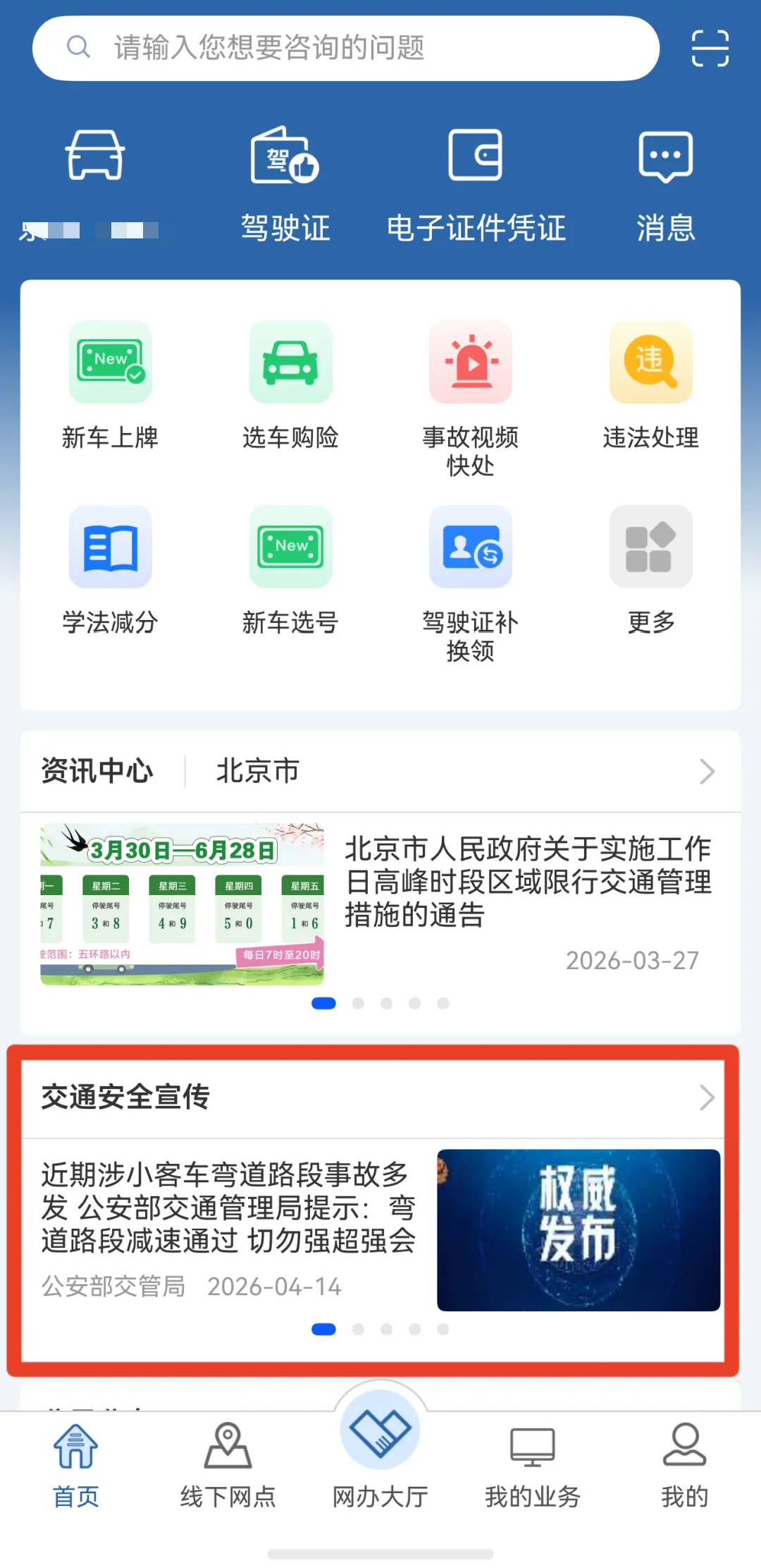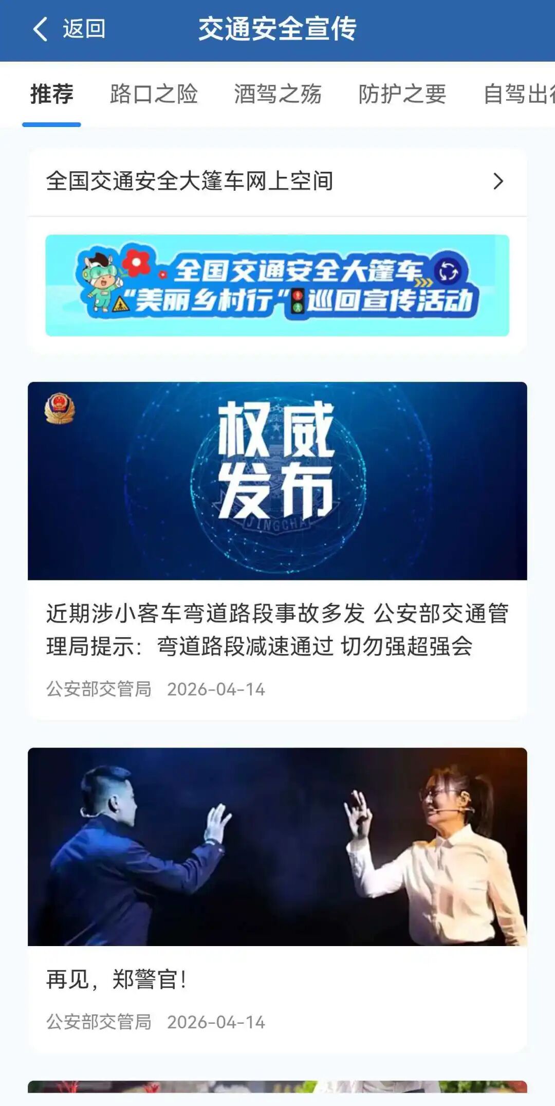 为进一步加强线上交通安全宣传阵地建设,推动交通安全精准宣传教育,“交管12123”APP“交通安全宣传”版块进一步扩容,在原有四个内容栏目(新驾驶人、自驾出行、亲子课堂、银龄课堂)的基础上,新增设了“路口之险”“酒驾之殇”“防护之要”三个栏目。