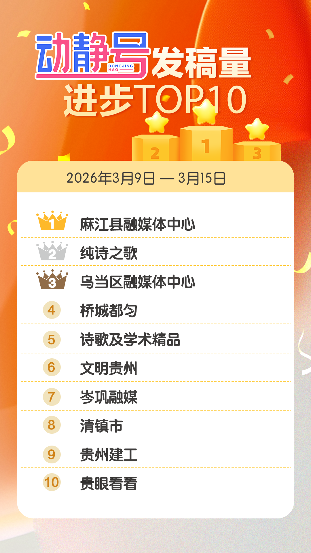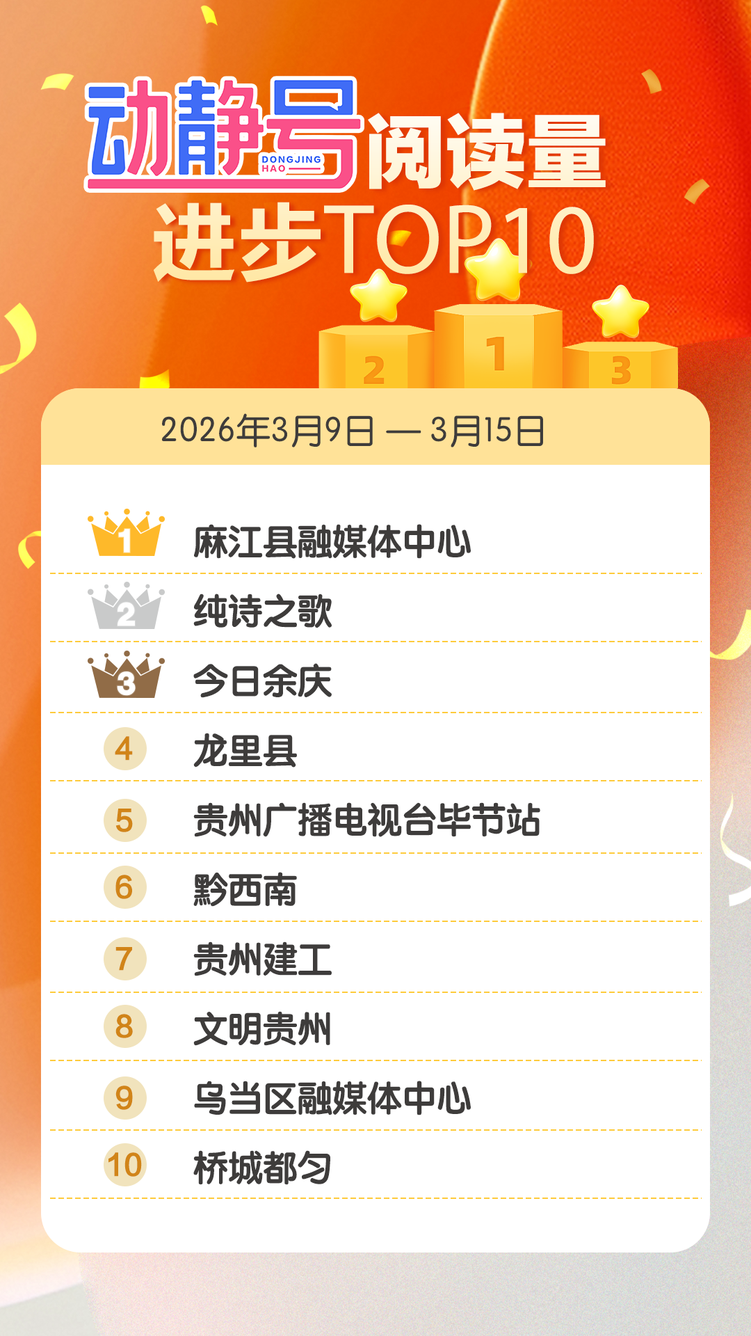 麻江县融媒体中心与纯诗之歌双双跻身发稿量、阅读量进步榜单前三,表现亮眼;
