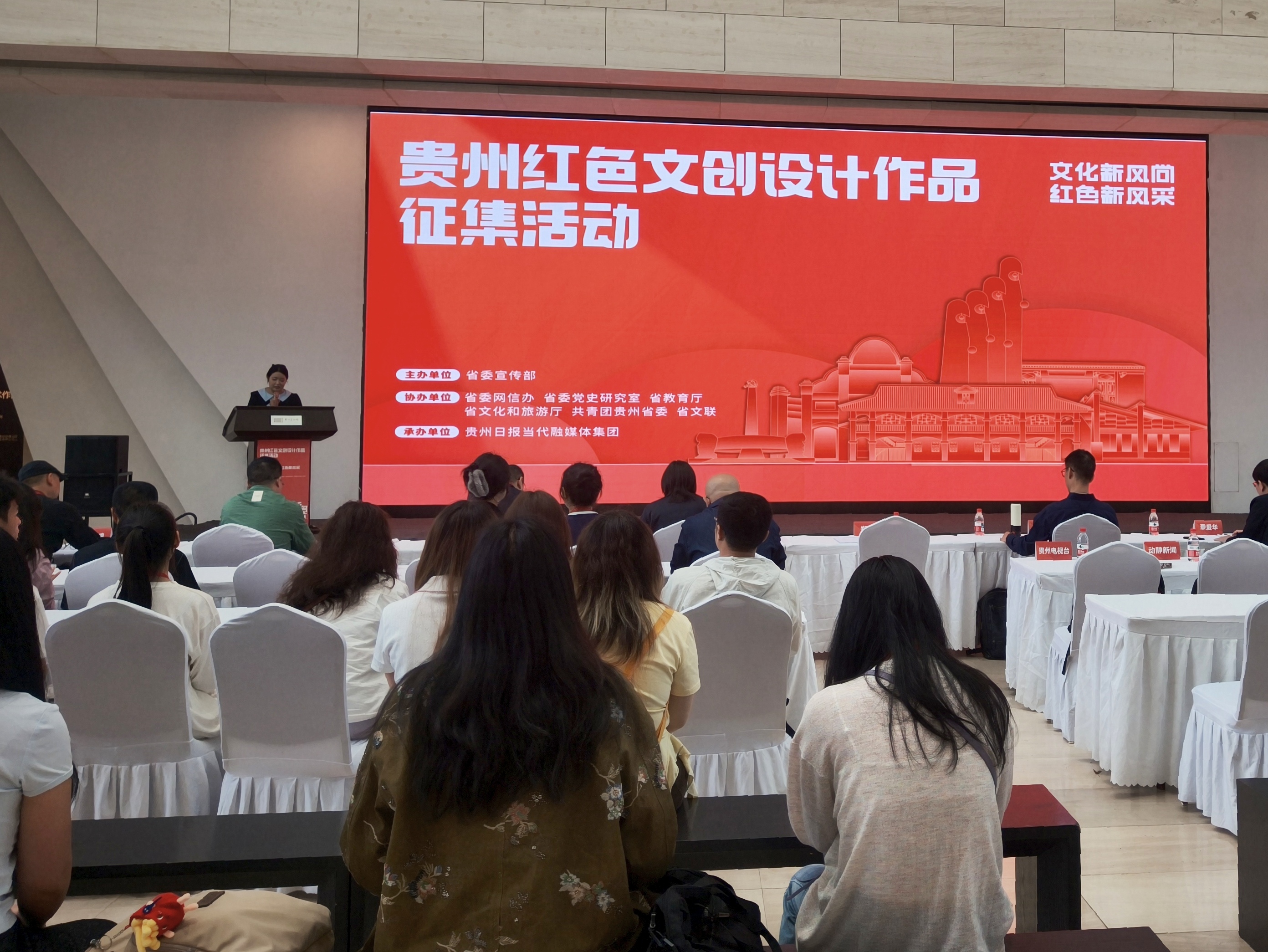 本次活动由贵州省委宣传部主办,省委网信办、省委党史研究室、省教育厅、省文化和旅游厅、共青团贵州省委、省文联协办,贵州日报当代融媒体集团承办。自2025年10月启动以来,活动吸引全国设计爱好者、专业院校师生及设计师积极参与,共收到投稿2000余份。经审核,1600余份有效作品进入评审环节,涵盖平面设计、文创实物、音视频及数字作品等多个类别。